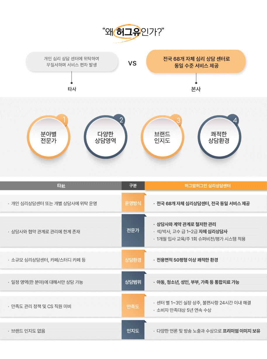 [제 1 장 총칙] 제 1 조 목적 이 약관은 허그맘 허그인 EAP 심리상담센터 (이하 "회사") 홈페이지에서 제공하는 모든 서비스의 이용조건 및 절차에 관한 사항과 기타 필요한 사항을 전기통신사업법 및 동법 시행령이 정하는 대로 준수하고 규정함을 목적으로 합니다. 제 2 조 정의 "이용자"라 함은 홈페이지에 접속하여 이 약관에 따라 홈페이지가 제공하는 서비스를 받는 회원 및 비회원을 말합니다. "회원"이라 함은 홈페이지에 개인정보를 제공하여 회원등록을 한 자로서, 홈페이지의 정보를 지속적으로 제공받으며, 홈페이지가 제공하는 서비스를 계속적으로 이용할 수 있는 자를 말합니다. "비회원"이라 함은 회원에 가입하지 않고 회사 홈페이지에서 제공하는 서비스를 이용하는 자를 말합니다. 제 3 조 약관의 효력과 변경 이 약관은 회사 홈페이지의 초기 서비스 화면에 이용자에게 공지사항을 통해 공시함으로써 효력이 발생합니다. 회사는 사정 변경의 경우와 영업상 중요 사유가 있을 때 약관의 규제 등에 관한 법률 등 관련법을 위반하지 않는 범위에서 이 약관을 변경할 수 있으며, 이 경우에는 적용일자 및 개정사유, 변경되는 내용을 명시하여 현행 약관과 함께 초기 서비스 화면에 그 적용일자 7일전부터 적용일자 전일까지 공지합니다. 제2항에 의거, 변경된 약관은 제1항과 같은 방법으로 효력이 발생합니다. 제 4 조 약관외 준칙 이 약관에 명시되지 않은 사항이 관계 법령에 규정되어 있을 경우에는 그 규정에 따릅니다. [제 2 장 회원 가입 및 서비스 이용] 제 1 조 서비스 이용 계약의 성립 회사 홈페이지상 서비스 이용 계약은 이용자가 회원 가입에 따른 서비스 이용 신청에 대한 회사의 이용 승낙과 이용자의 이 약관에 동의한다는 의사표시로 성립됩니다. 이용자가 회원에 가입하여 회사 홈페이지상 서비스를 이용하고자 하는 경우, 회원은 회사에서 요청하는 개인 신상정보를 제공해야 합니다. 이용자의 회사 홈페이지상 서비스 이용신청에 대하여 회사가 승낙한 경우, 회사는 회원 ID와 기타 회사가 필요하다고 인정하는 내용을 이용자에게 통지합니다. 회사는 다음 각 호에 해당하는 서비스 이용 신청에 대하여는 이를 승낙하지 아니합니다. 가. 다른 사람의 명의를 사용하여 신청하였을 때 나. 본인의 실명으로 신청하지 않았을 때 다. 서비스 이용 계약 신청서의 내용을 허위로 기재하였을 때 라. 사회의 안녕과 질서 혹은 미풍양속을 저해할 목적으로 신청하였을 때 제 2 조 서비스 이용 및 제한 회사 홈페이지상 서비스 이용은 회사의 업무상 또는 기술상 특별한 지장이 없는 한 연중무휴, 1일 24시간을 원칙으로 합니다. 전항의 서비스 이용시간은 정보통신 시스템 등 정기점검/교체 등 회사가 필요한 경우, 회원에게 사전 통지한 후, 제한할 수 있습니다. 제2항에 의한 서비스 중단의 경우에는 회사는 회원이 회사의 홈페이지에 제출한 전자우편 주소로 개별 통지하거나, 불특정다수 회원에 대하여는 1주일 이상 게시판에 게시함으로써 개별 통지에 갈음할 수 있습니다. [제 3 장 의무] 제 1 조 회사의 의무 회사는 특별한 사정이 없는 한 회원이 신청한 서비스 제공 개시일에 서비스를 이용할 수 있도록 합니다. 회사는 이 약관에서 정한 바에 따라 계속적, 안정적으로 서비스를 제공할 의무가 있습니다. 회사는 회원으로부터 소정의 절차에 의해 제기되는 의견에 대해서는 적절한 절차를 거쳐 처리하며, 처리시 일정 기간이 소요될 경우 회원에게 그 사유와 처리 일정을 알려주어야 합니다. 회사는 회원의 정보를 철저히 보안 유지하며, 양질의 서비스를 운영하거나 개선하는 경우 또는 제품소개 등 회사 내부 목적으로 이용하는 데만 사용하고, 이외의 다른 목적으로 타 기관 및 제3자에게 양도하지 않습니다. 제 2 조 회원의 의무 ID와 비밀번호에 관한 모든 관리의 책임은 회원에게 있습니다. 회원은 ID 및 비밀번호를 제3자에게 이용하게 해서는 안됩니다. 회원은 ID 및 비밀번호를 도난당하거나 제3자가 사용하고 있음을 인지하는 경우에는 회원은 반드시 회사에 그 사실을 통보해야 합니다. 회원은 이 약관 및 관계 법령에서 규정한 사항을 준수하여야 합니다. 이용자는 다음 행위를 하여서는 안됩니다. 가. 신청 또는 변경시 허위내용의 등록 나. 회사 홈페이지에 게시된 정보의 변경 다. 회사 홈페이지가 정한 정보 이외의 정보(컴퓨터 프로그램 등)의 송신 또는 게시 라. 회사 홈페이지 기타 제3자의 저작권 등 지적재산권에 대한 침해 마. 회사 기타 제3자의 명예를 손상시키거나 업무를 방해하는 행위 바. 외설 또는 폭력적인 메시지, 화상, 음성 기타 공서양속에 반하는 정보를 공개 또는 게시하는 행위 [제 4 장 서비스 이용 계약 해지 및 이용 제한] 제 1 조 서비스 이용 계약 해지 및 이용 제한 회원이 서비스 이용 계약을 해지하고자 하는 때에는 회원 본인이 직접 주식회사ED 웹 마스터에게 서비스 이용 계약 해지 신청을 요청해야 합니다. 전항의 경우, 회원은 이름, ID, 비밀번호를 입력하여 주식회사ED 웹 마스터에게 메일을 보내면 회원 가입 및 서비스 이용 계약이 해지됩니다. 회원 가입 및 서비스 이용 